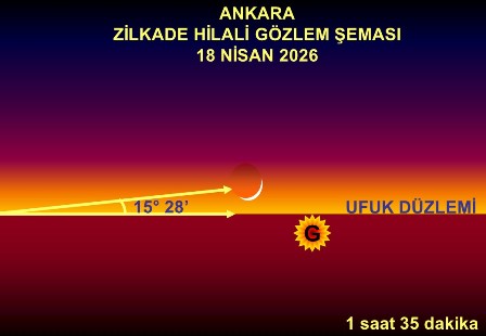 ANKARA VE MEKKE İÇİN 2026 YILI 1447 ZİLKADE HİLALİNİN ŞEMALARI