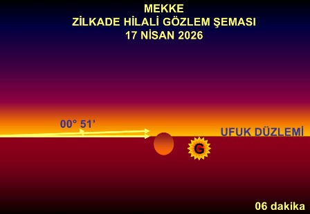Mekke’de 51’, Ankara’da 02° 20’ olacaktır. Hilal